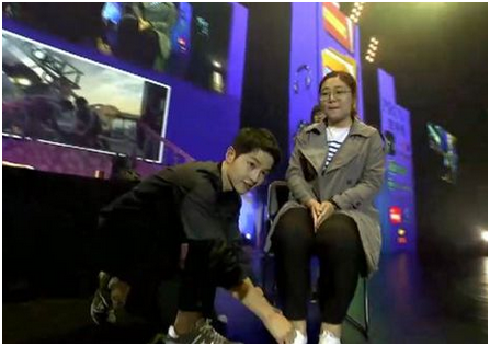 终于到了令人期待的游戏环节,干瞪眼、赞赞赞、石头剪刀布等让幸运粉丝又一次亲密接触仲基欧巴,并获得了由偶像男神亲手递出的尊龙套装作为参与奖品。